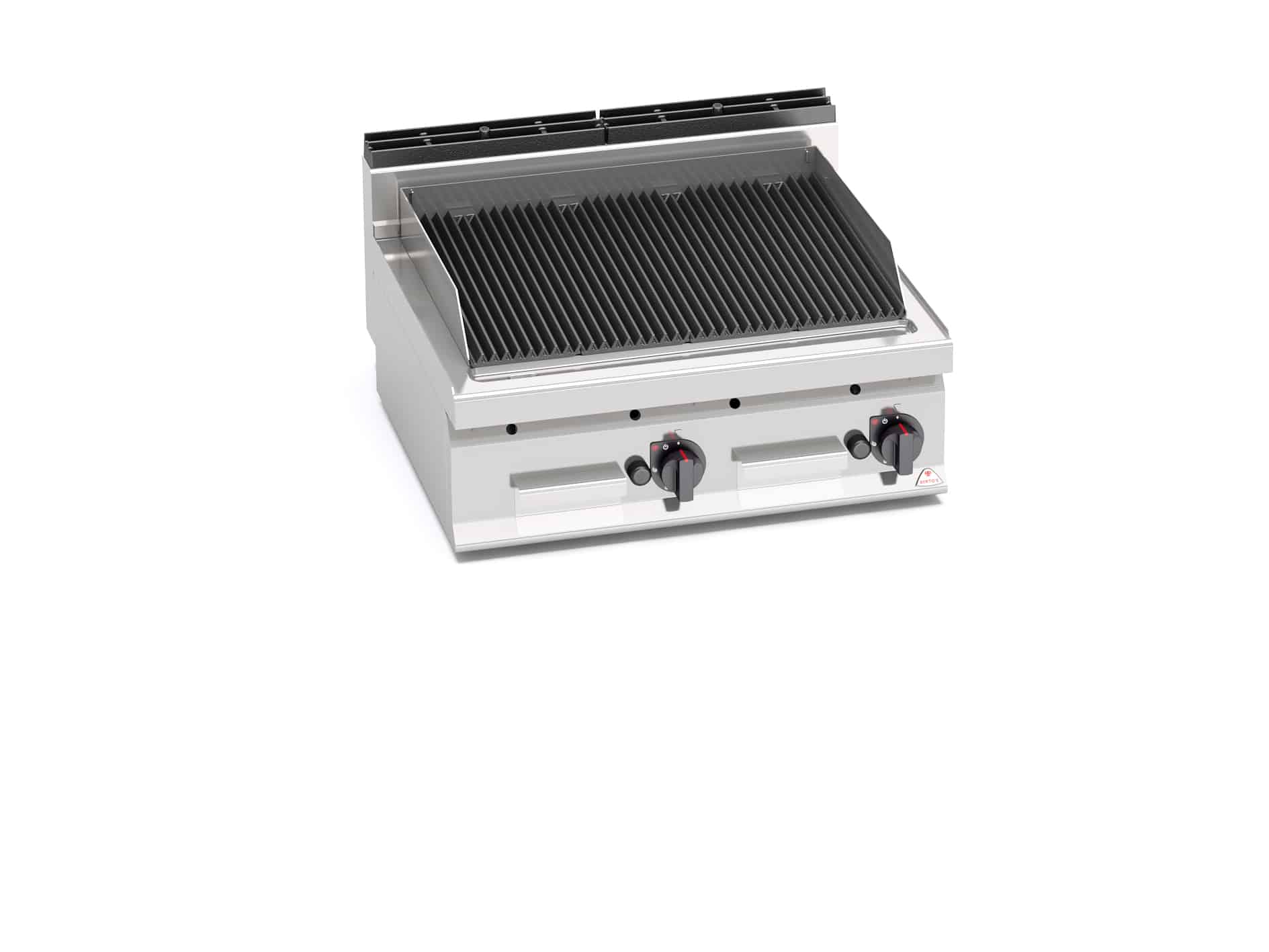 Płaszczyzna robocza i panele przednie wykonane ze stali nierdzewnej inox AISI 304. Regulacja mocy za pomocą pokrętła o ciągłym cyklu pracy. Płomień pilotujący i zawόr bezpieczeństwa w termoparze. Zapłon piezoelektryczny, z silikonową osłoną. Misa ze stali nierdzewnej. Obszerna powierzchnia gotowania z łatwousuwalnym rusztem z żeliwa. Specyficzny projekt umożliwia gotowanie ryb, mięs i warzyw i zapobiega zapaleniu się tłuszczy. Dwie strefy z oddzielnymi poleceniami w celu niezależnej regulacji oraz optymalnej temperatury. Wszystkie elementy są łatwe w demontażu dla regularnych operacji konserwacyjnych i czyszczenia urządzenia. Szczelna, długa kaseta wykonana całkowicie ze stali do zbierania popiołu i tłuszczy. Kamień wulkaniczny włączony w dostawę. Nόżki nastawne.