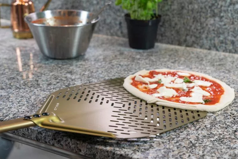 Łopata do pizzy perforowana aluminiowa, okrągła 41cm, długość rączki 180cm Gimetal Gold G-41F/180