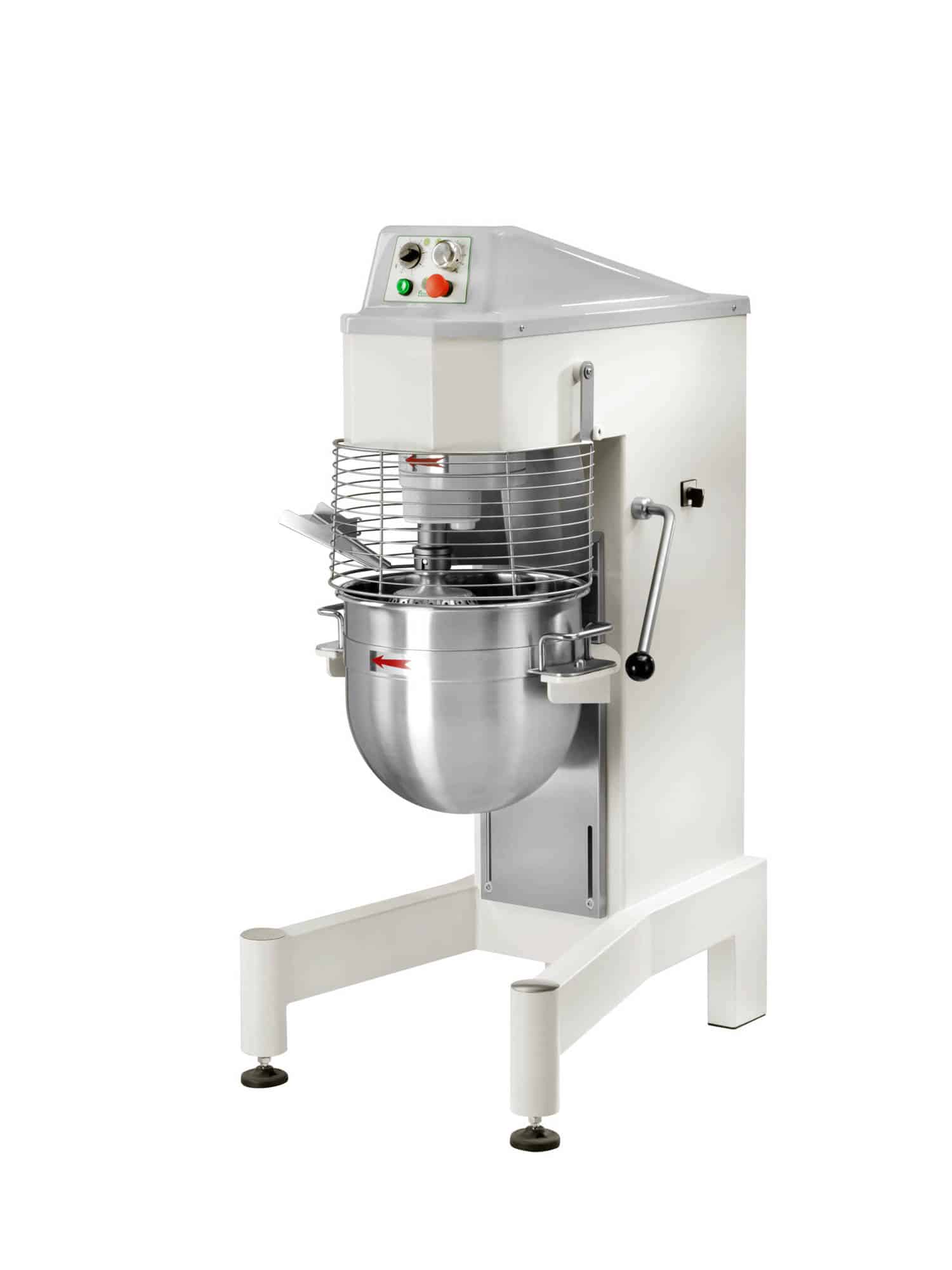 Mikser planetarny z regulatorem prędkości i sterowaniem mechanicznym oraz falownikiem. Maszyna do różnych rodzajów ciast, takich jak pizza, pieczywo, herbatniki, rogaliki, bułeczki, ptysie, biszkopty, ciasta kruche, bezy, przeciery, różne sosy, bita śmietana, itp. Rama pokryta farbą odporną na zarysowania – górna obudowa z ABS – miska, bicz i osłona miski ze stali nierdzewnej AISI 304 – hak i szpatułka z aluminium – mikroprzełącznik na misce i osłonie miski – wyjmowana misa – szybkie podłączenie narzędzia.