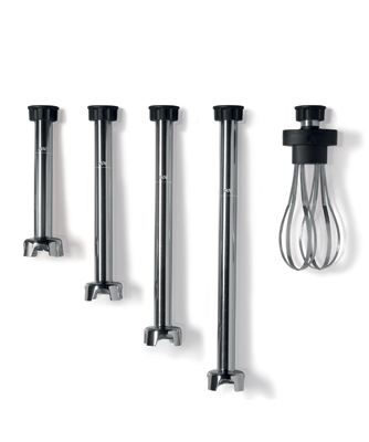elementy ubijające wykonane ze stali nierdzewnej; ramię o długości 300 mm; do prostego ubijania np. śmietany, białka; bardzo łatwe utrzymanie czystości