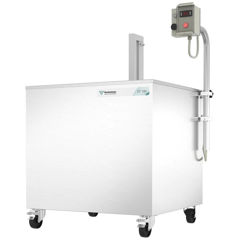 Obkurczarka Diptank DT-100 firmy Henkelman jest w pełni wykonana ze stali nierdzewnej. Dzięki solidnej konstrukcji i ergonomicznej formie urządzenie jest bardzo proste w czyszczeniu. Czas cyklu pracy można ustawić według własnych potrzeb i mieści się on w zakresie os 3 do 5 sekund
