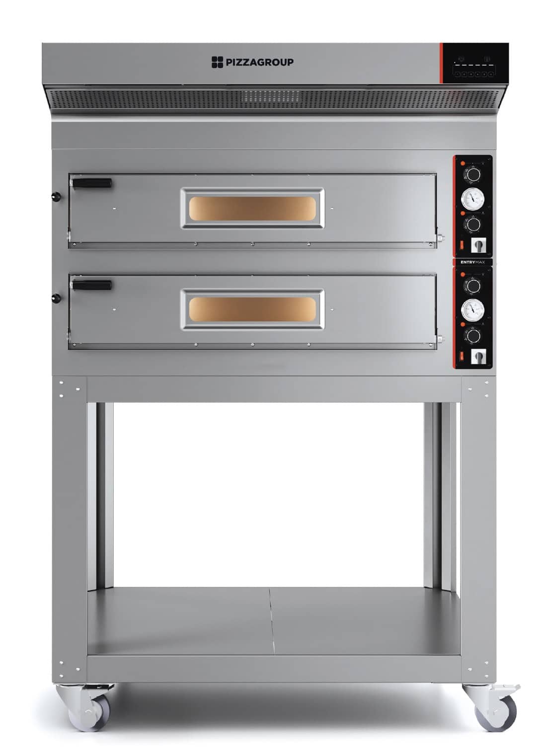 Linia ta charakteryzuje się niezależną regulacją temperatury górnej i dolnej części pieca do pizzy, co pozwala utrzymać równomierne rozprowadzanie ciepła na kamieniu. W elektrycznych piecach do pizzy Pizza Group Entry Max można piec wszystko, ale szczególnie dobrze nadaje się do pieczenia pizzy, chleba i ciast, osiągając i utrzymując stałą temperaturę do 450°C. Równomierne rozprowadzanie ciepła zapewnia doskonałe wyniki pieczenia, ale dla osób poszukujących jeszcze lepszej stabilności temperatury dostępny jest zestaw „Full Refractory Stone” czyli komory w pełni wypełnionej szamotem.