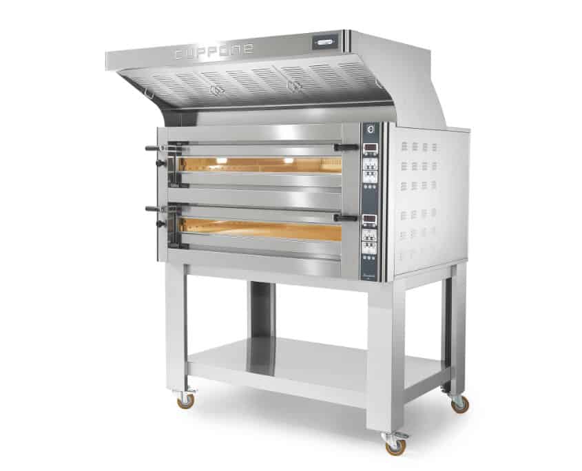 Piece do pizzy Cuppone Donatello to bardzo dobre rozwiązanie do wymagających pizzerów z mniejszym budżetem. Piece wykonane są ze stali nierdzewnej zewnątrz i wewnątrz komory a spód komory wyłożony jest wysokiej jakości szamotem. Piece posiadają solidną izolacje komory dzięki czemu trzymają porządaną i ustawioną temperaturę rzadziej dogrzewając się, tym samym oszczędzając energię czyli pieniądze. Piece wyposażone są mechaniczny system odzysku energii, ręczne regulowanie wilgotności komory. Piece występują w 2 wersjach: Wersja D czyli Digital to wersja w której możemy ustawić temperaturę komory jak również regulować moc 2 grup grzewczych na górze i dole komory według uznania między 0 – 100% mocy. Możemy zapisać programy, piec posiada brzęczyk informujący o końcu pracy albo o gotowości pieca do pracy. Wersja CD to piece Control System with Digital switches w którym również możemy ustawić osobno temperatury górnych i dolnych elementów grzewczych natomiast w opcji minimum albo maximum, brak możliwości zapisywania programów, piec również posiada brzęczyk.