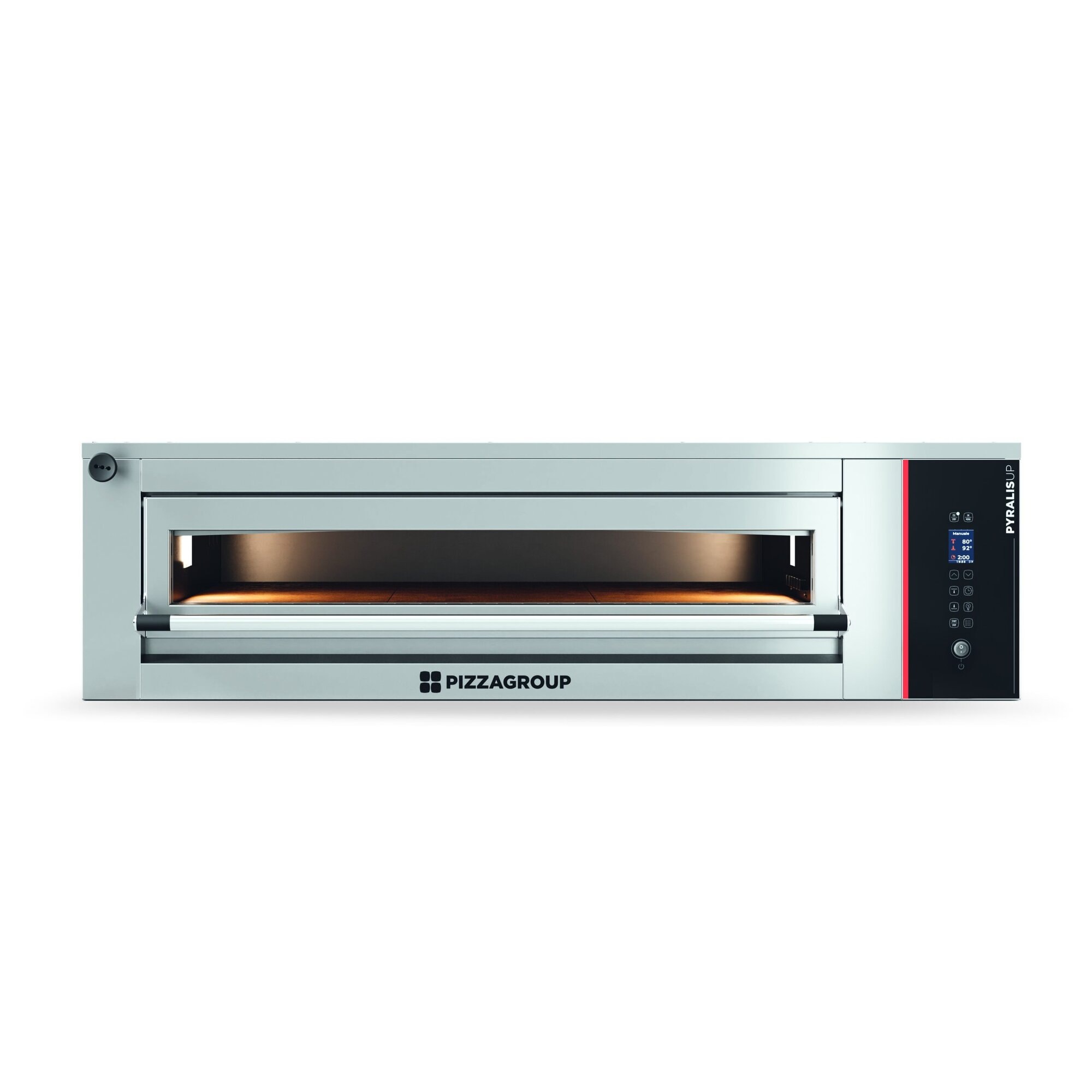 Pizza Group Pyralis UP to idealne rozwiązanie technologiczne dla profesjonalistów wymagających precyzji, wszechstronności i wydajności, piece idealne do pieczenia wszystkich rodzajów pizzy i wypieków. Pizza Group odnowiła swoją linię pieców Pyralis, kładąc duży nacisk na estetykę produktu, dzięki czemu są one idealnym rozwiązaniem do instalacji w lokalach gastronomicznych. Cała linia Pyralis jest wyposażona w wysokowydajną technologię Activestone i może być zamówiona z pełną komorą wyłożoną szamotem dla jeszcze większej wydajności cieplnej.