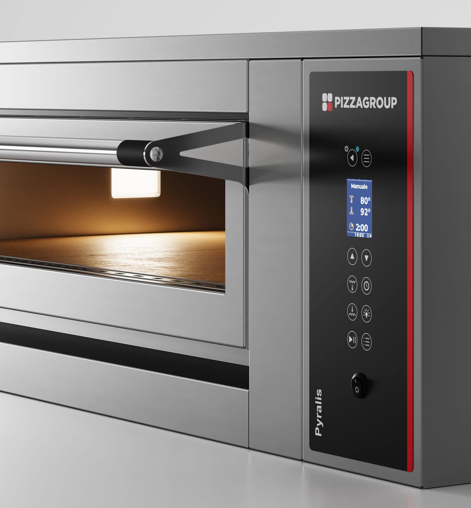 Pizza Group Pyralis to idealne rozwiązanie technologiczne dla profesjonalistów wymagających precyzji, wszechstronności i wydajności, piece idealne do pieczenia wszystkich rodzajów pizzy i wypieków. Pizza Group odnowiła swoją linię pieców Pyralis, kładąc duży nacisk na estetykę produktu, dzięki czemu są one idealnym rozwiązaniem do instalacji w lokalach gastronomicznych. Cała linia Pyralis jest wyposażona w wysokowydajną technologię Activestone i może być zamówiona z pełną komorą wyłożoną szamotem dla jeszcze większej wydajności cieplnej.