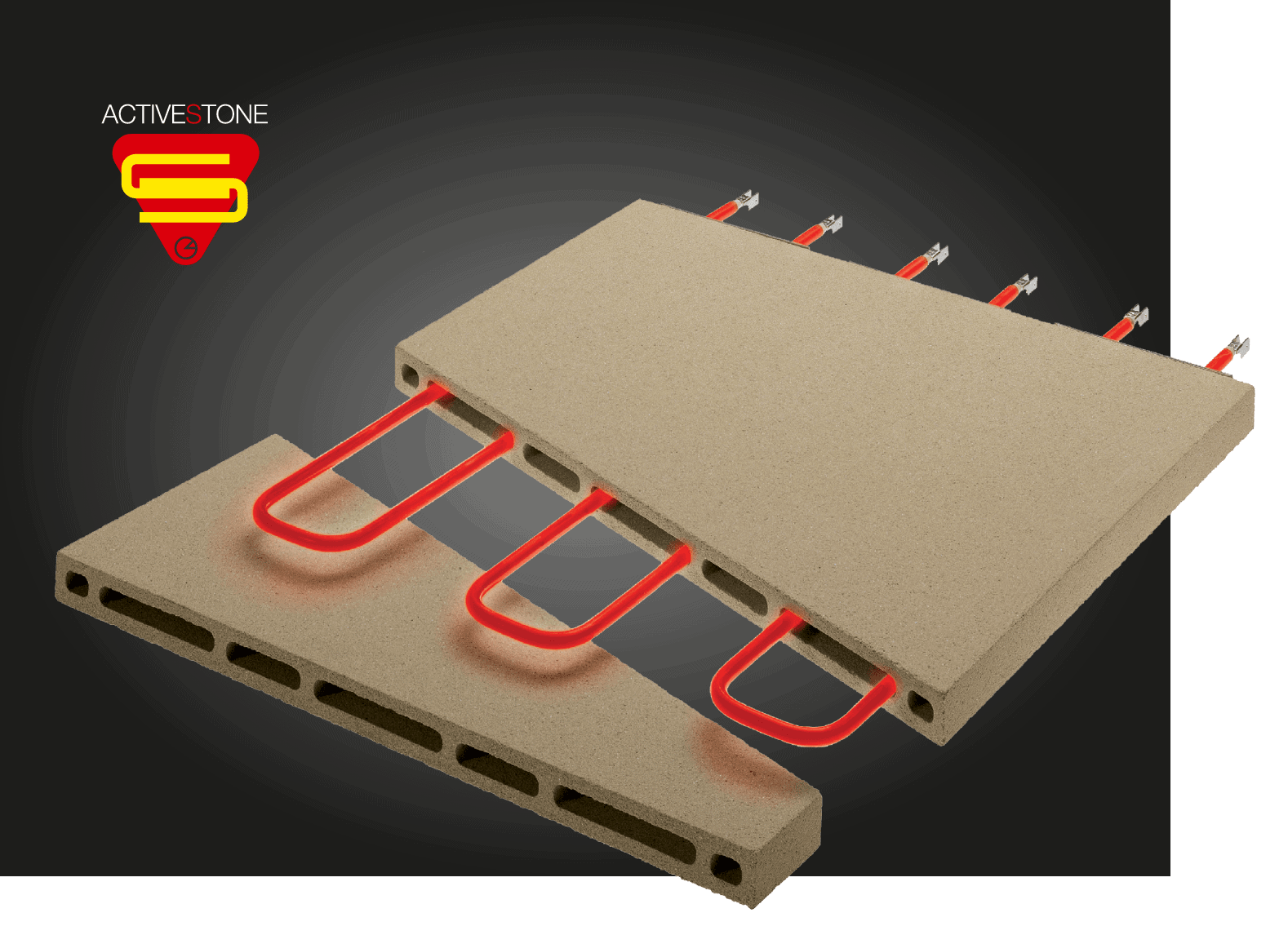 Szamot specjalnej konstrukcji, w której elementy grzewcze są umieszczone bezpośrednio wewnątrz kamienia, co zapewnia maksymalną równomierność pieczenia i zwiększoną stabilność cieplną również podczas szczytowych godzin kiedy potrzebna jest szczególnie wysoka wydajność. Zwiększona bezwładność cieplna sprawia, że kamień Active Stone jest idealnym rozwiązaniem również do ciast pieczonych na blasze/tacy takich jak Pizza Rzymska Al Taglio.