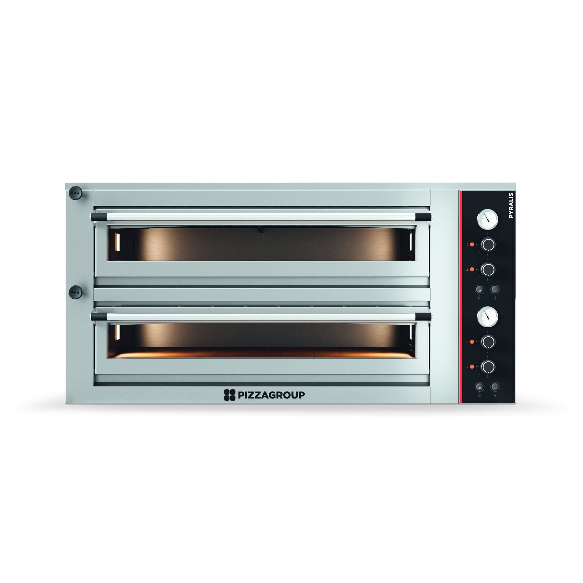 Elektryczny 2 komorowy piec do pizzy na 2 x 9 pizz o średnicy 33 cm z dotykowym sterowaniem, rozmiar powierzchni szamotu 105x105cm, Pizza Group Pyralis PY M18 Pizza Group Pyralis to idealne rozwiązanie technologiczne dla profesjonalistów wymagających precyzji, wszechstronności i wydajności, piece idealne do pieczenia wszystkich rodzajów pizzy i wypieków. Pizza Group odnowiła swoją linię pieców Pyralis, kładąc duży nacisk na estetykę produktu, dzięki czemu są one idealnym rozwiązaniem do instalacji w lokalach gastronomicznych. Cała linia Pyralis jest wyposażona w wysokowydajną technologię Activestone i może być zamówiona z pełną komorą wyłożoną szamotem dla jeszcze większej wydajności cieplnej. Linia Pyralis obejmuje elektryczne piece do pizzy o pojemności od 4 do 18 pizz o średnicy 33 cm, z manualnymi lub cyfrowymi panelami sterowania. Wszystkie modele mają wytrzymałą konstrukcję ze stali nierdzewnej, podwójnie szklane drzwi zapewniające optymalne zatrzymywanie ciepła oraz rączkę z szczotkowanej stali nierdzewnej, która nie nagrzewa się podczas użytkowania. W wersji cyfrowej system pozwala zapisać do 100 konfigurowalnych programów pieczenia, uporządkowanych według kategorii produktów i podzielonych na wiele etapów. Każda komora obsługuje do czterech niezależnych timerów, umożliwiając jednoczesne przygotowywanie różnych potraw z maksymalną wydajnością. Ustawienia temperatury można regulować w °C lub procentach mocy %, a tygodniowy harmonogram włączania/wyłączania automatyzuje zarządzanie energią. Tryby ECO i BOOST pozwalają dostosować wydajność do różnych wymagań serwisowych — zmniejszając zużycie energii w spokojniejszych okresach lub maksymalizując wydajność w godzinach szczytu. Wreszcie funkcja czyszczenia pirolitycznego zapewnia głęboką, łatwą higienę na koniec każdego dnia. Pizza Group Pyralis to więcej niż tylko piec do pizzy: to inteligentny partner, który upraszcza i wzbogaca każde doświadczenie kulinarne. Szamot specjalnej konstrukcji, w której elementy grzewcze są umieszczone bezpośrednio wewnątrz kamienia, co zapewnia maksymalną równomierność pieczenia i zwiększoną stabilność cieplną również podczas szczytowych godzin kiedy potrzebna jest szczególnie wysoka wydajność. Zwiększona bezwładność cieplna sprawia, że kamień Active Stone jest idealnym rozwiązaniem również do ciast pieczonych na blasze/tacy takich jak Pizza Rzymska Al Taglio. System Activestone charakteryzuje się wysoką wydajnością cieplną, która pozwala zmniejszyć: czas nagrzewania nawet o 50% całkowite zużycie energii nawet o 25% czas gotowania nawet o 25% (w porównaniu z tradycyjnymi systemami grzewczymi dostępnymi na rynku). System Activestone zawiera elementy grzewcze wewnątrz kamienia ogniotrwałego, zapewniając równomierną temperaturę na całej powierzchni. System Activestone, który może osiągać temperaturę do 550°C, spełnia normy RoHS. Gotowe spody? Klasyczne pizze? Pizze pieczone na siatce? Pizze pieczone w okrągłej blasze? Pizze w stylu neapolitańskim? Niezależnie od tego, jaki rodzaj pizzy przygotowujesz, Pizza Group ma dla Ciebie odpowiednie rozwiązanie. PremiumGastro to nie tylko sklep internetowy… Specjalizujemy się w pizzy i posiadamy własny showroom wpełni wyposażony do szkolenia czy pokazu możliwości oferowanych przez nas urządzeń. Współpracując z nami otrzymasz nasze pełne wsparcie.