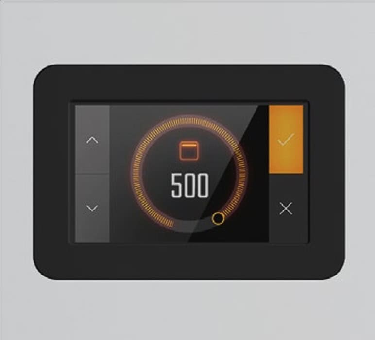 5-calowy wyświetlacz dotykowy umożliwia sterowanie funkcjami pieca za pomocą jednego dotknięcia. Inteligentny system zarządzania ciepłem z automatyczną modulacją temperatury, również w godzinach szczytu. Elektromechanicznie sterowany zawór odprowadzający opary. Sterowanie oświetleniem i łączność.