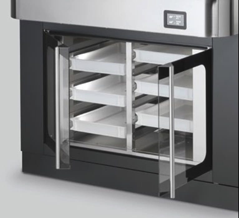 Szafa garownicza z regulowaną temperaturą od 5 °C do 60 °C, mieszcząca do 12 (model 6) lub 24 (model 9) pojemników na pizzę o rozmiarze 600×400