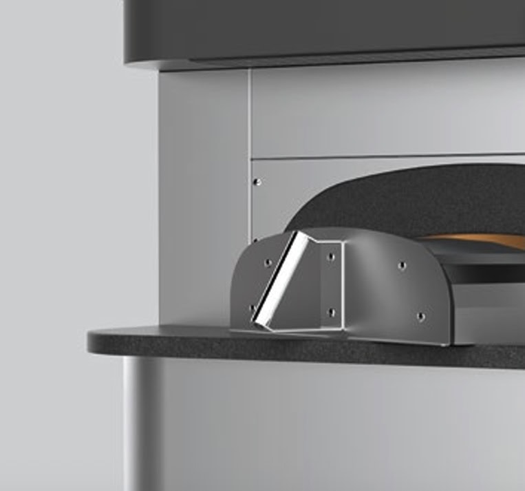 Piec do pizzy Neapolitańskiej 550 posiada innowacyjną okap, który uruchamia się automatycznie i jest wyposażony w oświetlenie LED oraz ekran dotykowy. Jego rewolucyjny system odsysa opary, utrzymując stałą temperaturę w komorze pieczenia, bez tworzenia zimnych lub nadmiernie gorących obszarów.