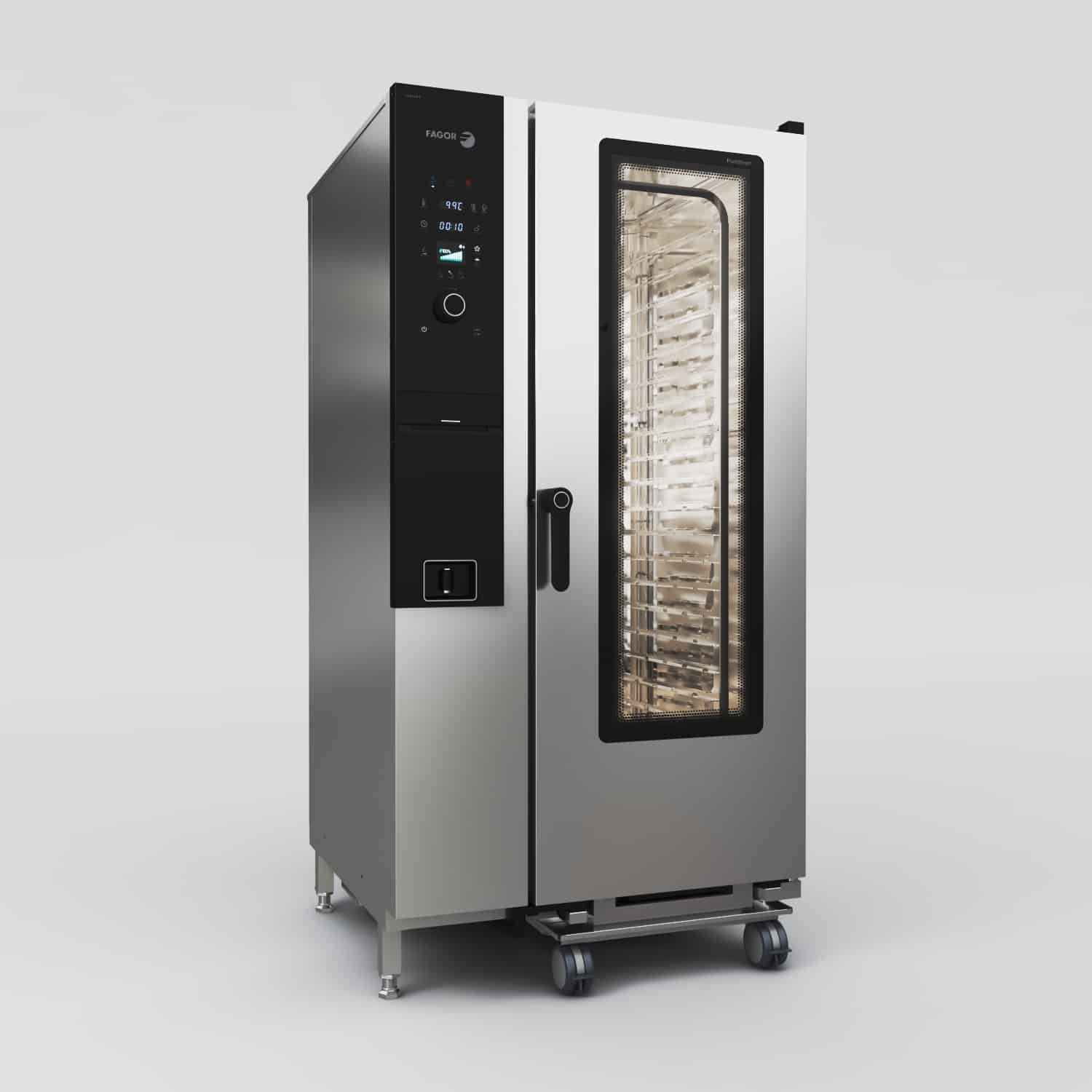 Pojemność 20 x GN1/1. Właściwości: PureSteam: Bojler wyposażony w detektor kamienia, z funkcją automatycznego napełniania. iCooking (książka kulinarna): mięso, drób, ryby, owoce morza, warzywa, ryż i rośliny strączkowe, jajka i nabiał, ciasta i chleb. Centrum przepisów Fagor. iFunction: regeneracja, gotowanie próżniowe, gotowanie nocne, fermentacja, pasteryzacja, wędzenie, marynowanie, dehydratacja. iClima: zarządzanie i regulacja wilgotności z dokładnością do 10%. Tryby gotowania: para niskotemperaturowa 30-98°, para 99°, superpara 100-130°, kombinacja 30-300° i konwekcja 30-300°.