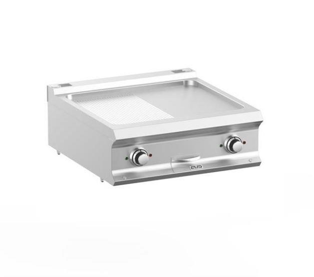 Asortyment płyt grillowych obejmuje wiele modeli z gładką, ryflowaną lub mieszaną powierzchnią, o różnej szerokości modułu (połowa lub pełna szerokość modułu), wyposażonych w nagrzewanie gazowe lub elektryczne i regulację temperatury za pomocą termostatu lub termopary, wyłącznie w wersji monoblok (urządzenia wolnostojące).