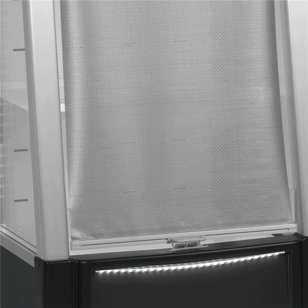 Wymiary 640x640x1540 mm pozwalają na wygodną ekspozycję i umieszczenie witryny nawet w niewielkiej przestrzeni. Pojemność 161 litrów zapewnia wystarczającą przestrzeń do przechowywania i wyeksponowania różnorodnych produktów.
