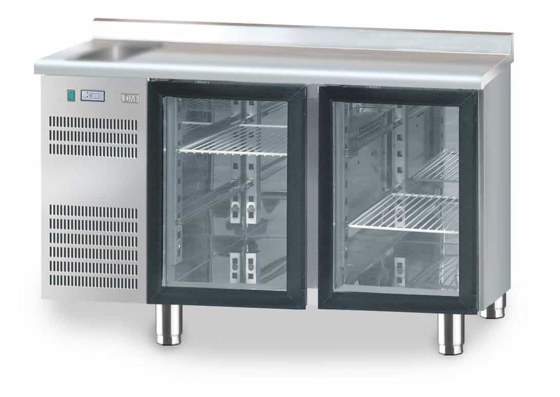 Stół chłodniczy 2 drzwiowy ze zlewem, przeszklony 1325x700x850 Dora-Metal DM-91005