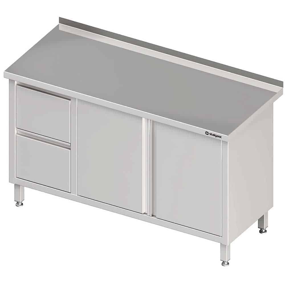 Stół przyścienny z blokiem dwóch szuflad (L),drzwi skrzydłowe 1800x700x850 mm Stalgast 980327180