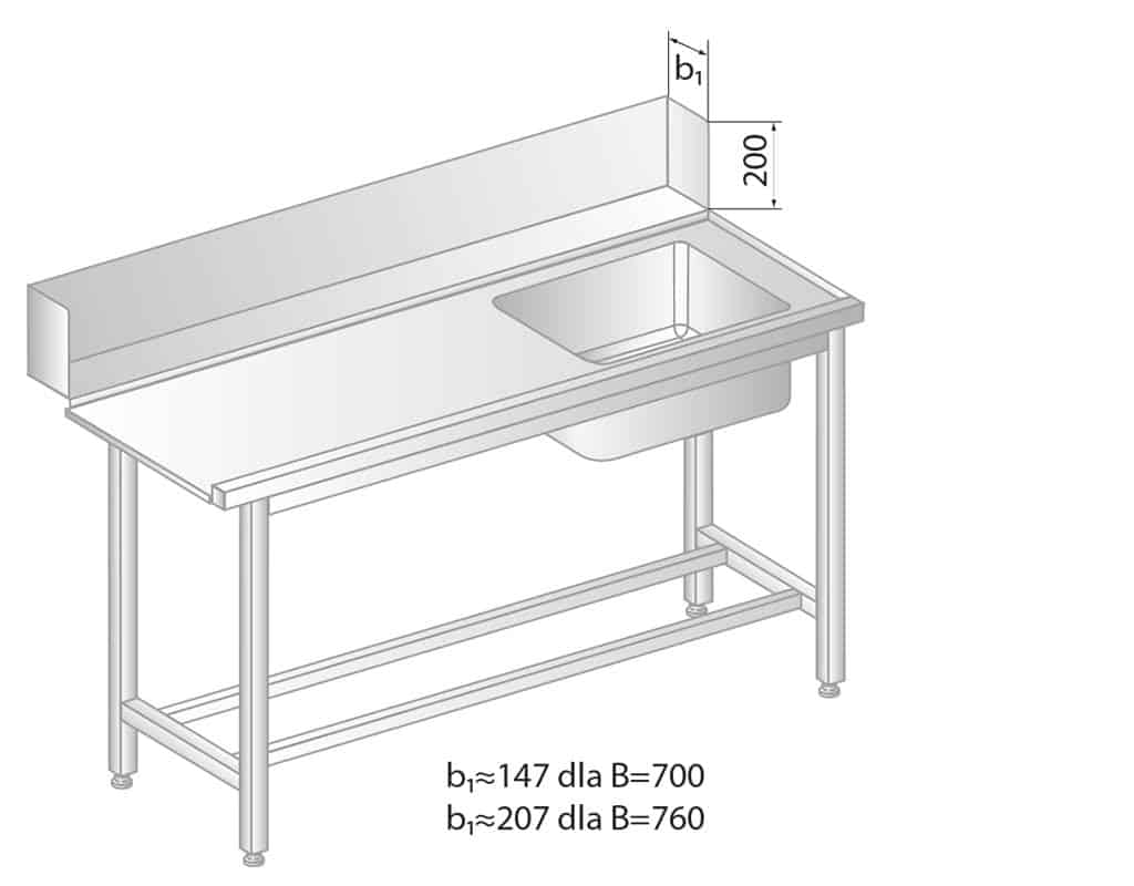 Stół załadowczy do zmywarek ze zlewem wykonany jest ze stali nierdzewnej, o spawanej konstrukcji zapewniającej sztywność i wytrzymałość na równomiernie rozłożone obciążenia pionowe (do 2000 N) i boczne (do 1000 N). Stół wyposażony jest w: