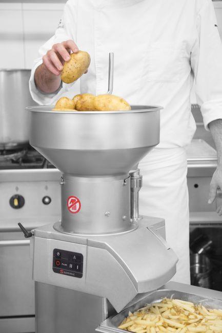 - Boczne wyjście dla pokrojonych warzyw zapewnia lepsza ergonomie pracy nawet na węższym blacie roboczym