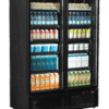 Chłodziarka ekspozycyjna Tefcold Atom Maxi C2DBB wyróżnia się doskonałą ekspozycją produktów, dzięki czemu przyciąga wzrok klientów. Jej eleganckie, czarne wnętrze i obudowa, w połączeniu z niskim zużyciem energii oraz nowoczesnym oświetleniem LED, sprawiają, że jest nie tylko funkcjonalna, ale także stylowa. Drzwi z podwójnego hartowanego szkła zamykają się samoistnie, a regulowane półki i chłodzenie wentylatorowe podnoszą komfort użytkowania.