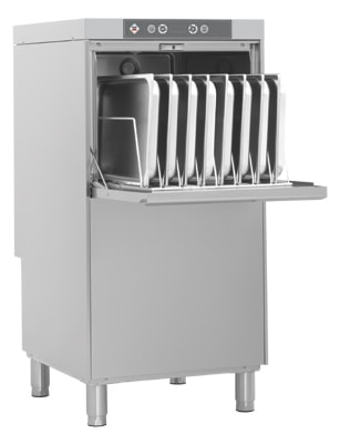 wydajność: 60/40/20 koszy/h/ 5 programów standardowych (cykle: 120”. 240”. 360”. 480”. 600”) + 3 programy specjalne/ wymiary kosza: 500 x 600 mm/ wysokość otworu drzwi – 405 mm/ maksymalna wysokość talerza – 380 mm/ dwupłaszczowa obudowa/ zużycie wody: 2.4 l/cykl/ ramiona myjąco – płuczące typu „Click-clack” na potrójnych łożyskach grafitowych: prosta. jednolita budowa kompozytowa/ sterowanie elektroniczne – inteligentny panel sterowania/ podgląd temperatury mycia i płukania na wyświetlaczu. termostop – gwarantowana temperatura płukania wg HACCP/ tłoczona wanna/ automatyczny start po zamknięciu drzwi/ program samoczyszczenia/ dozownik środka myjącego i płuczącego sterowany czasowo/ kontrolki pracy i grzania/ regulowany termostat bojlera/ kosze w zestawie: 1x uniwersalny/ pakiet chemii w promocyjnej cenie przy zakupie ze zmywarką